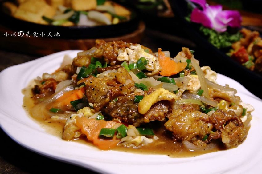 軟殼蟹裹粉油炸後,再與主廚特製醬料拌炒,乍看之下會以為是洋蔥炒蛋
