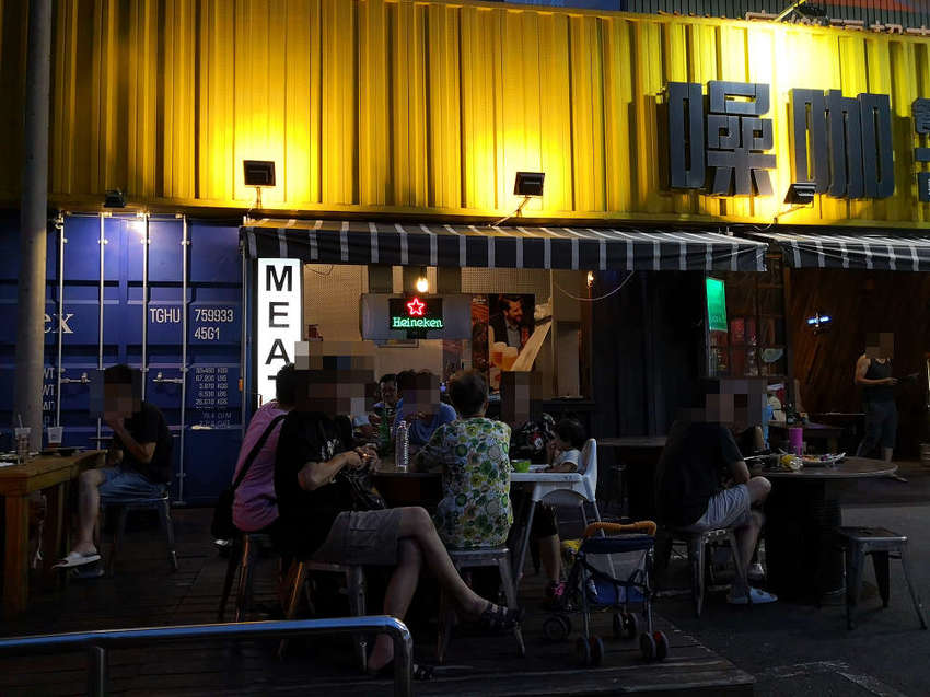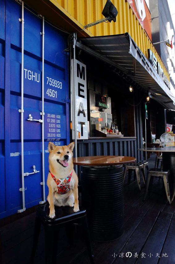 貨櫃屋的造型很是吸睛,戶外的環境呈現一股美式風格,汽油桶造型的立桌,感覺很活潑