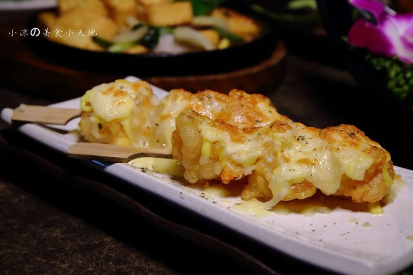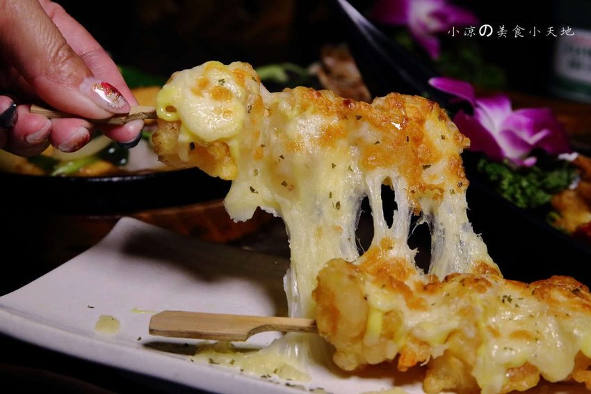 黃金炸蝦球酥脆的麵衣上有著融化後牽絲到不要不要的起司,你看看~你看看~牽絲牽成這樣會不會太超過啦