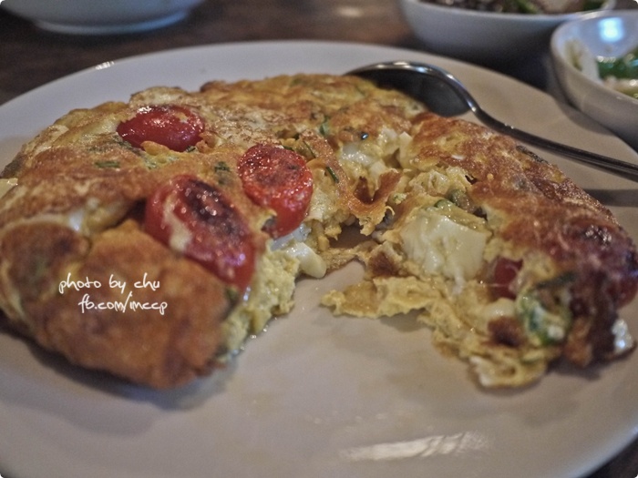 非常厚的一道烘蛋,因為裡面加了大量的豆腐,咬起來口感比一般烘蛋還要軟嫩,