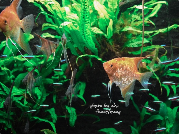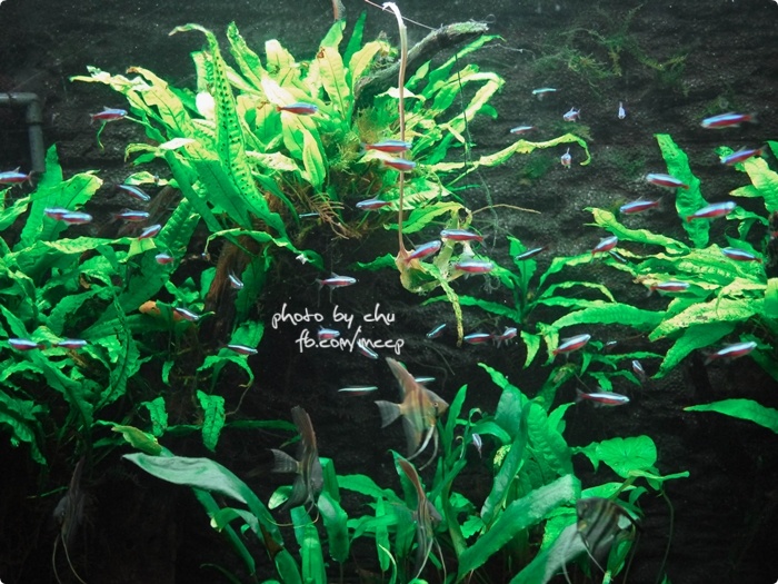 加上打燈的效果,裡頭的水草和魚兒更艷麗動人。