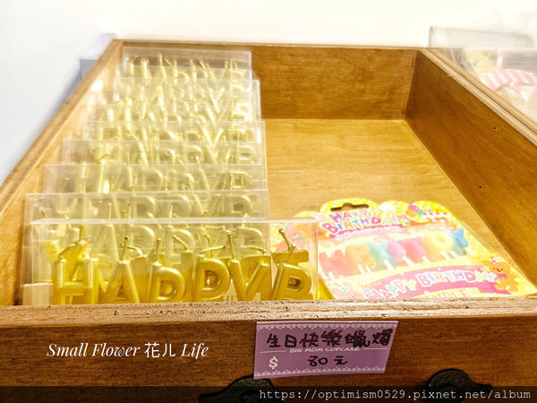 架上擺放著琳瑯滿目的慶生蠟燭,每一個造型都好漂亮