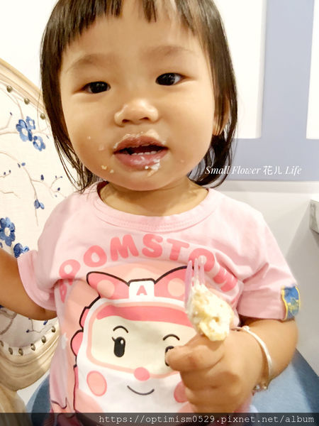 小花第一次吃杯子蛋糕,看來這甜點很榮獲小花的心,吃的很滿足啊!!