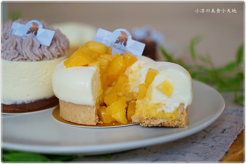 基底的塔皮香酥可口、芒果慕斯入口即化、碰撞上了微酸脆口的芒果