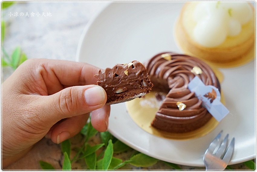 有著玫瑰擠花的巧克力塔在視覺上誘人不已,當然要慢慢享受囉~~