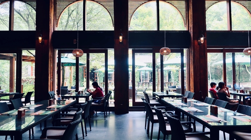 用餐環境明亮、寬敞、舒適,但因為講求環保,所以用餐區是沒有冷氣且窗戶都是打開來通風,夏日來用餐是不至於到很熱,但小黑蚊真的蠻多,建議穿著長袖、長褲來或是防蚊液要塗好塗滿。