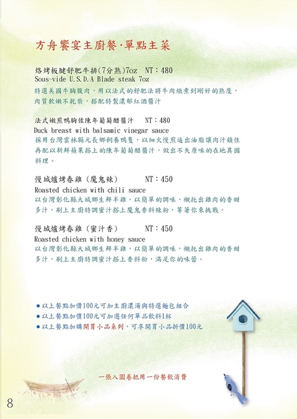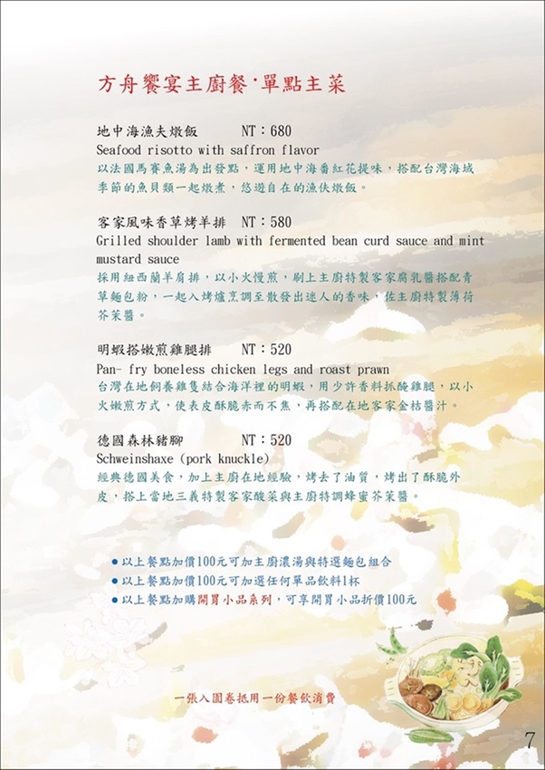 綠葉方舟,一入園會先收取100元/人的入園券,每一張入園券可抵一份餐飲消費,但不可折抵於紀念品、玩物等。