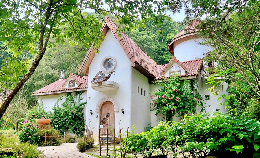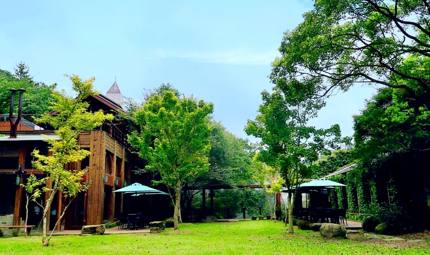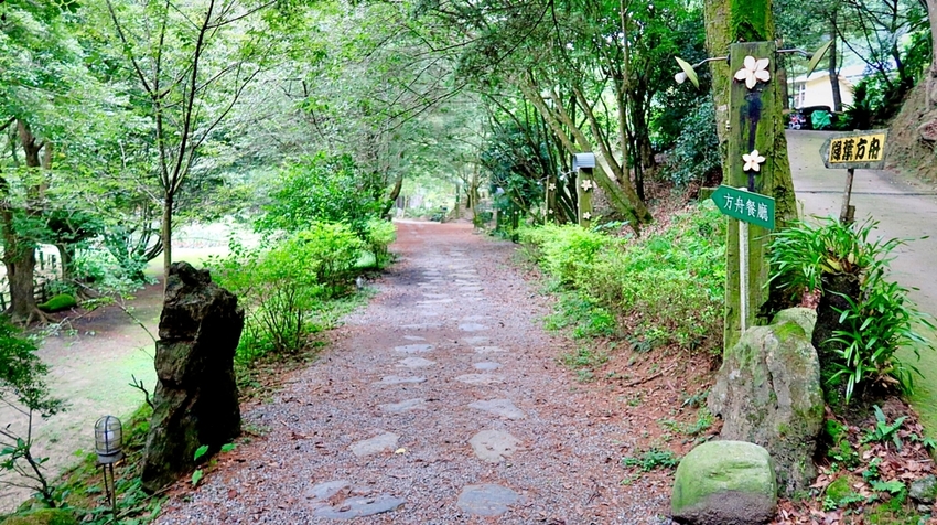 一走進園區內,先看到一棟隱身在樹林、花卉間的房子,這是「幸福小舖」,平日基本上不會開放,假日才會開放,這天來訪,很可惜是平日;再慢慢地往內走去,沿途風光真的是綠意盎然,呼吸著森林間的芬多精,真的挺不錯!