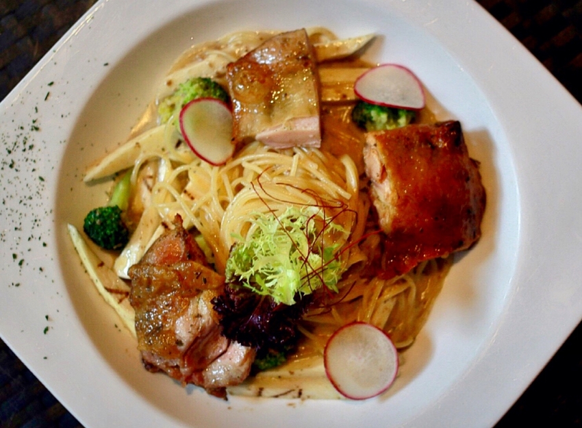 義大利麵條還算Q彈,雞肉煎的恰到好,唯獨就醬汁口味偏淡了些。