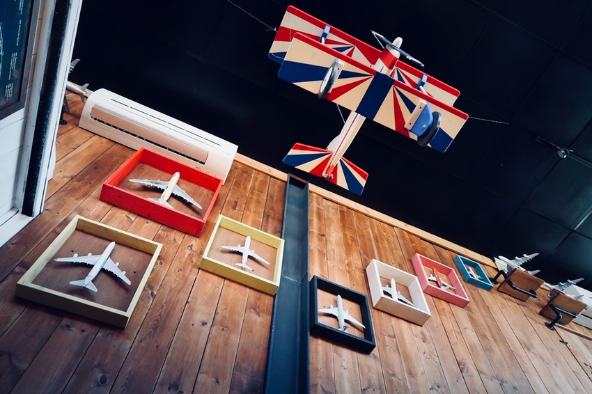 第三航廈咖啡廳,一樓戶外有蠻多的用餐座位以及小孩子們遊戲玩耍的地方,一走進咖啡廳的一樓,會被左側滿滿的飛機給吸引住,對飛機有興趣的飛機迷們是可以跟他們購買這些模型飛機喔!一樓基本上就是點餐的櫃檯區以及廁所。