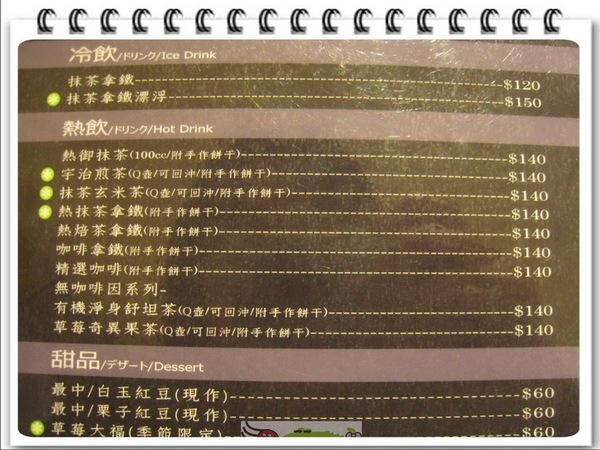 有很多抹茶甜點看起來都很美味耶,對於抹茶提拉米蘇本來也相當有興趣,不過怕會太甜所以沒有點,下次的重點應該是「抹茶戚風蛋糕和霜淇淋」的組合吧?不過這邊的缺點就是地點不是很方便,對於捷運一族的熊熊來說,來這邊的機會真的比較少呀!@@