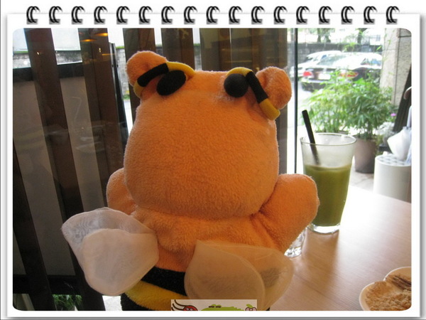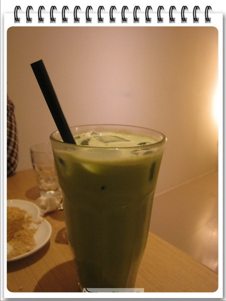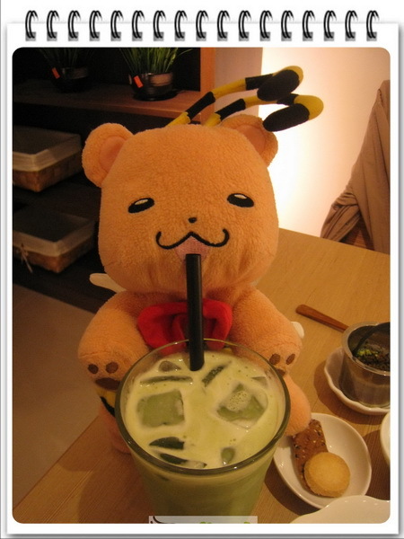 這個是饅頭點的「冰抹茶拿鐵」,(熱的有附手工餅乾,冰的就沒有了)。對不喝加糖飲料的蜜蜂熊來說,還蠻甜的,不過饅頭到是喝得很開心,覺得剛好!==b