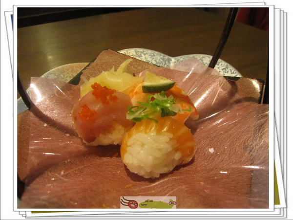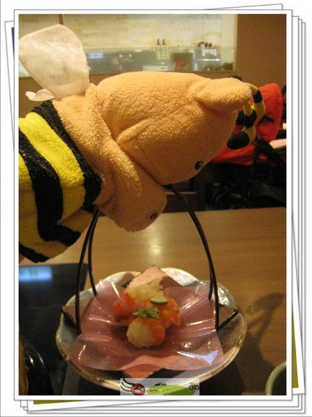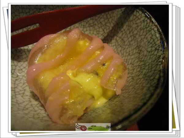 這是「手毬壽司」,有三種口味XD),味道都不錯,而且這樣小小的一口,吃起來也相當的方便。當甜點吃膩了之後,剛好可以用這個來中和一下味道。(熊熊喜歡含有鹹點的下午茶~