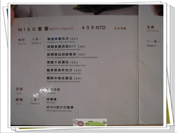 不過因為朋友還是想點份主餐類的,所以就點了「MISO套餐」(499元)。