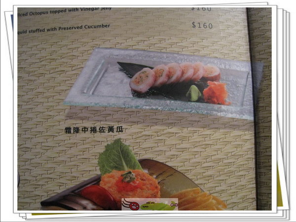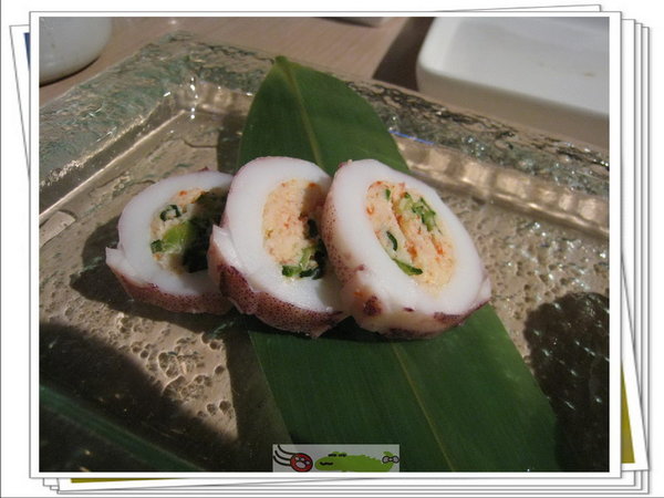 「霜降中捲佐黃瓜」這道很好吃,外面是中捲吃起來QQ的,裡面則是有小小的魚卵和切細的小黃瓜,整體搭配起來相當的合,單點的話也相當推薦的下酒菜!(要先聲明蜜蜂熊不是酒鬼~^^~)