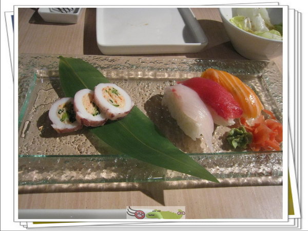 握壽司的味道也不錯,ㄎㄎ~真是賺到了!旁邊的芥末醬好像是用擠花筒擠出來的,看起來像一朵奶油花~