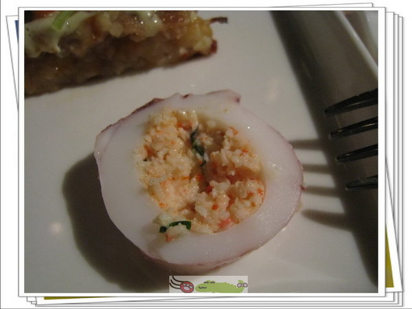 不過呢,吃到後來,朋友說又像在吃章魚燒一樣的感覺!哈哈~應該是因為上面有美奶滋的關係吧!