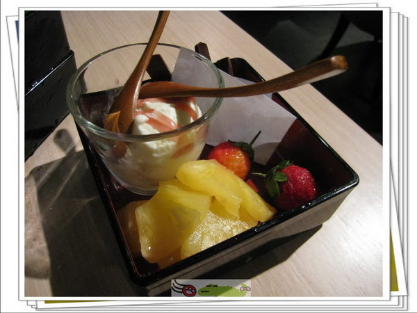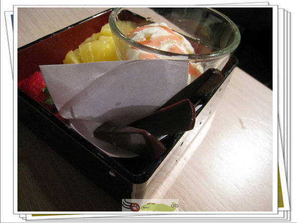 第二層就是水果,香草冰淇淋和巧克力!水果有草莓和鳳梨,本來以為鳳梨應該跟草莓一樣是新鮮的,不過可惜是用罐頭鳳梨,這樣就讓整體的感覺弱了下去,雖然說用罐頭的鳳梨可以確定。