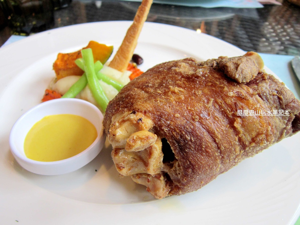 肉質不是多汁的那種,頗為有嚼勁,我喜歡它的外皮夠脆,但是肉如果再軟Q一點會更好,不然嘴巴咬得有點痠哪~