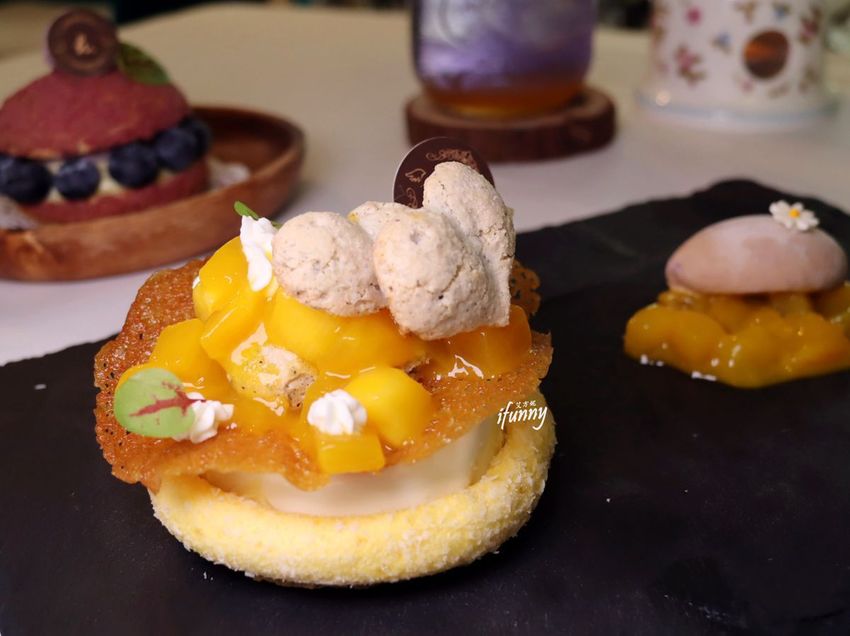 沒想到一個芒果塔竟然這麼費盡巧思,以芒果為主軸,卻以不同的形態呈現,吃進口中的風味十足卻有許多口感上的驚喜。