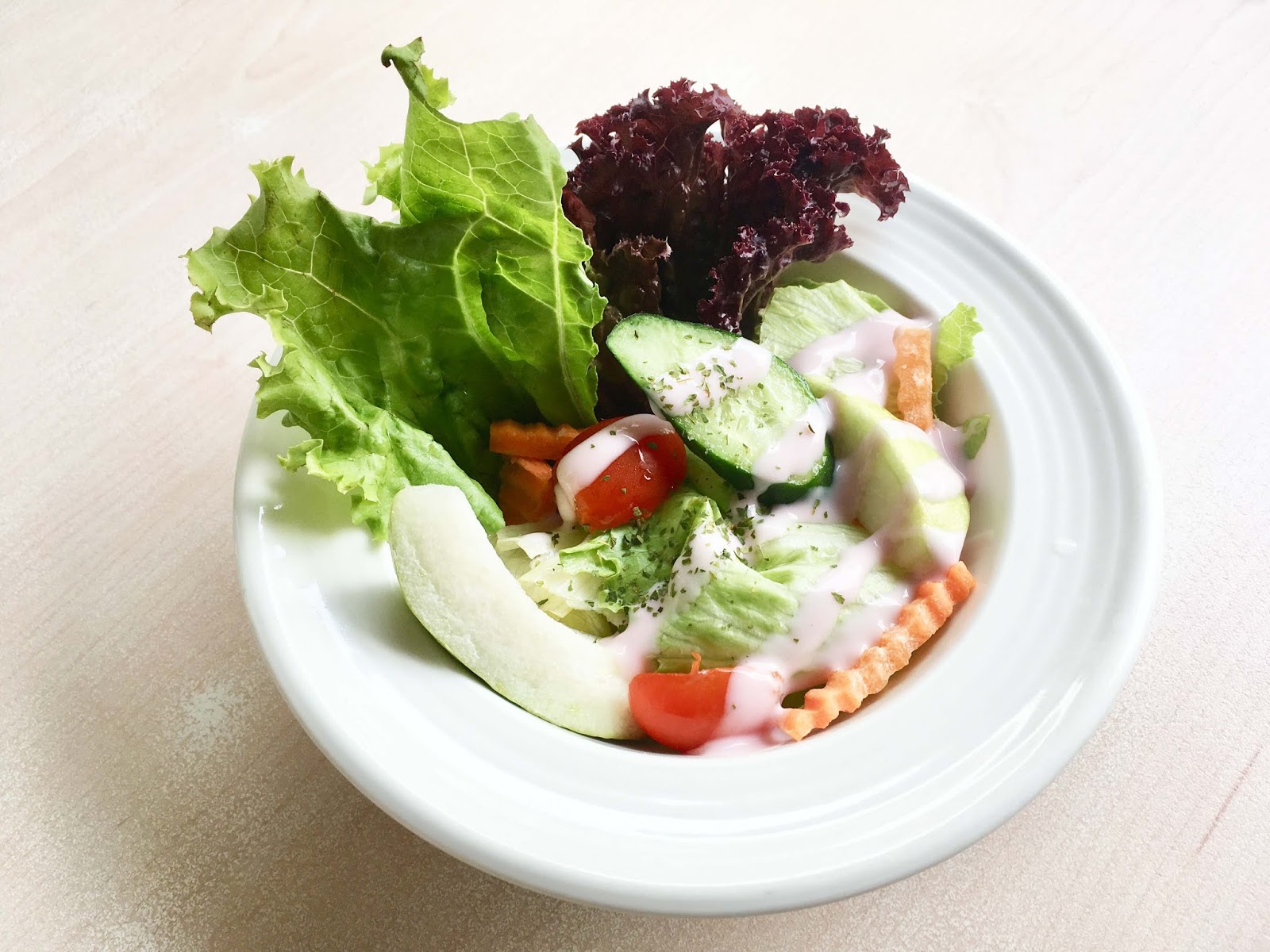 「主廚沙拉」有多種清脆的蔬菜和水果,繽紛的色彩好美,淋上酸甜的優格醬,是營養滿分的開胃前菜!