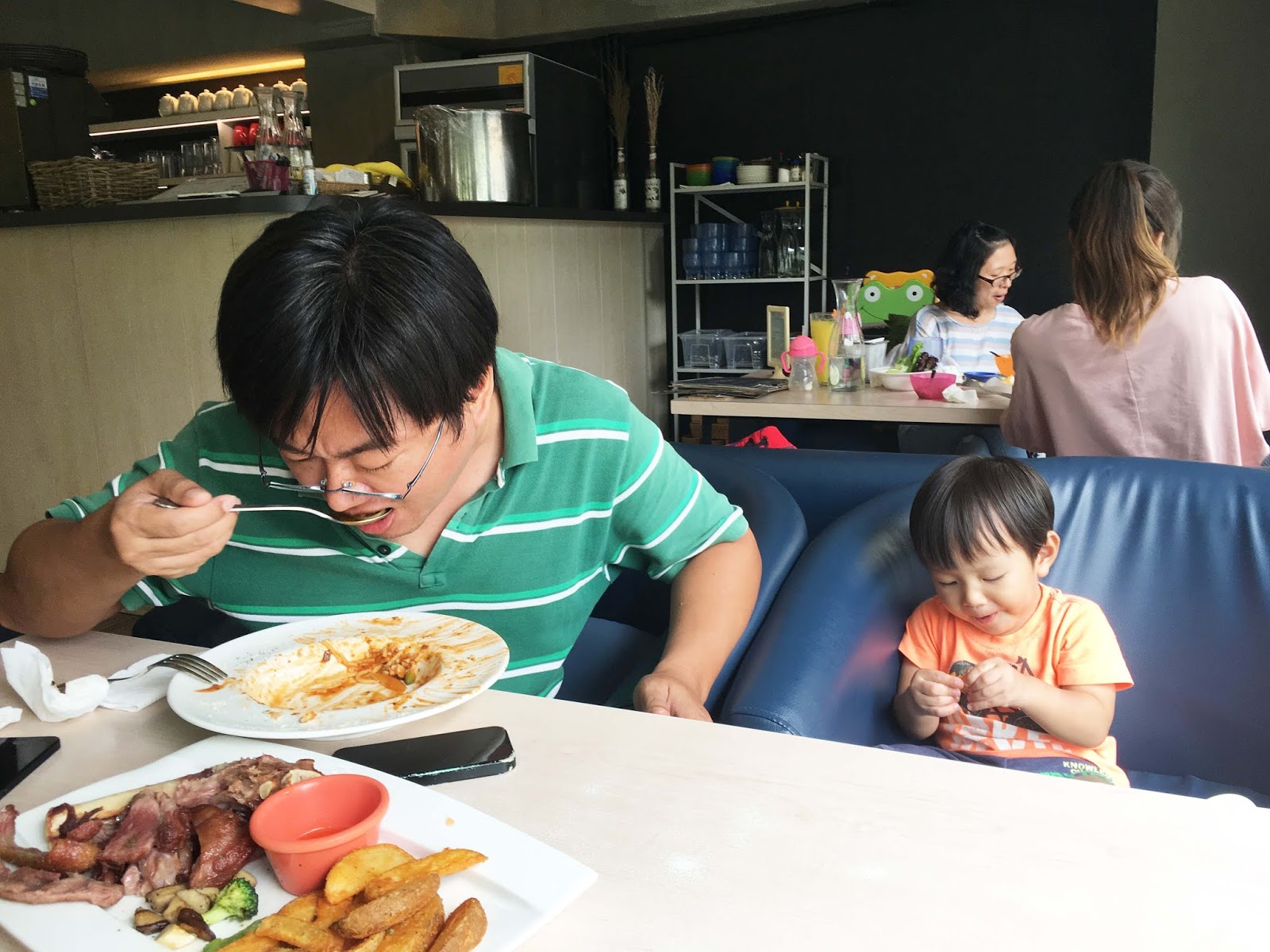 這一餐吃得好滿足,連挑嘴的小福寶都大快朵頤,我們選擇讓孩子坐在沙發上,比兒童座椅更舒適,一家人都很自在愜意地享用大餐。