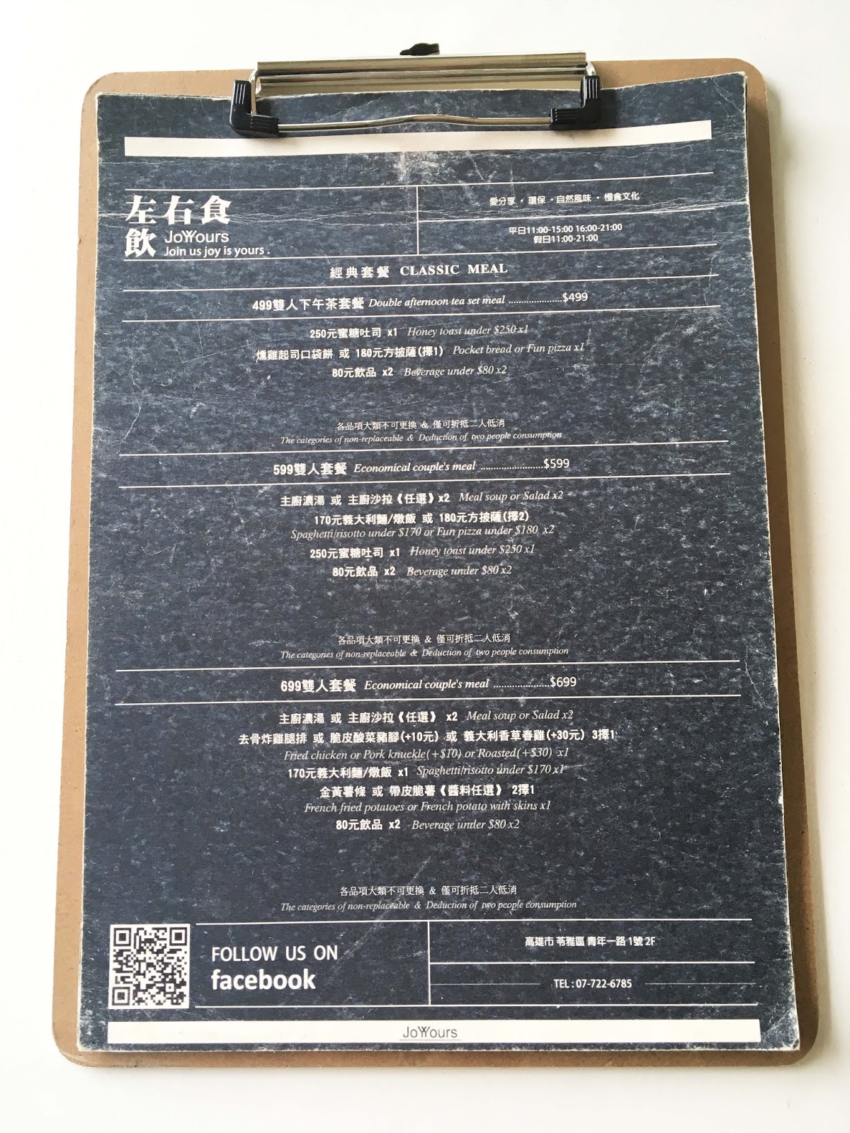 在墾丁旅遊時,民宿老闆知道我們回程會經過高雄,推薦我們他的私房景點「左飲右食輕食文化館(文化店)」,鄰近高雄市文化中心,提供平價的各式飲品、輕食和套餐等。我和媽媽朋友討論了一下,考量我們經過高雄時正好是中午,於是決定安排在此午餐,發現真的是很適合和好朋友聚餐和下午茶的好地方!要不是趕著回台南,真想在這裡無限暢談。