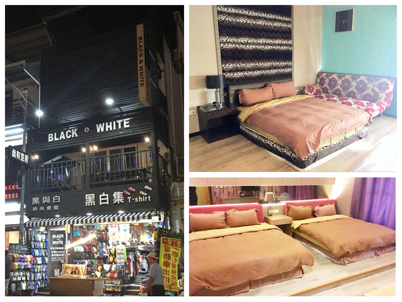 原本對於消費有些擔心,沒想到查詢旅館時,查到一間「黑與白時尚會館」蠻平價的!一間雙人房一晚只要一千多元,下樓馬上就可以逛墾丁大街,走路8分鐘就能到小灣海灘,距離船帆石只要5分鐘車程,距離恆春市區也僅有10分鐘車程,交通非常方便,因此預定10/11(四)的兩間房。