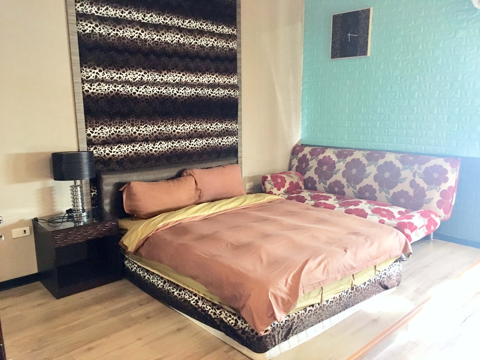我們家住的是有一張大床的雙人房,房間風格因為有紅色系沙發床而顯得溫馨,實際上將沙發床攤開,可以睡3-4個人,空間很足夠。