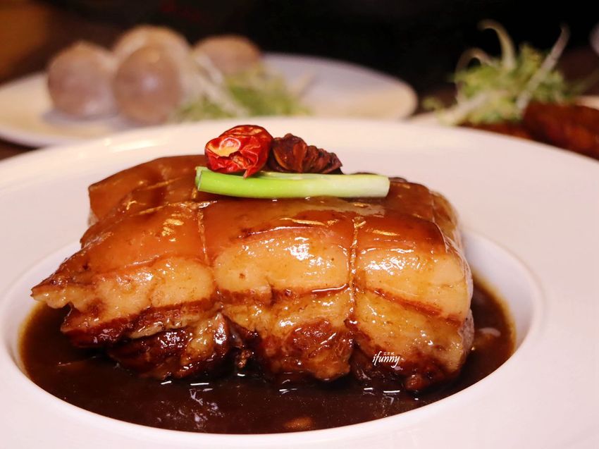 燉煮到發出閃亮的油光,以湯匙一剝就分解的軟嫩,簡直就是入口即化!滷香四溢的三層肉,油脂也燉至軟滑的口感,那肉汁澆在白飯上,更是太犯規的飯掃光啊!