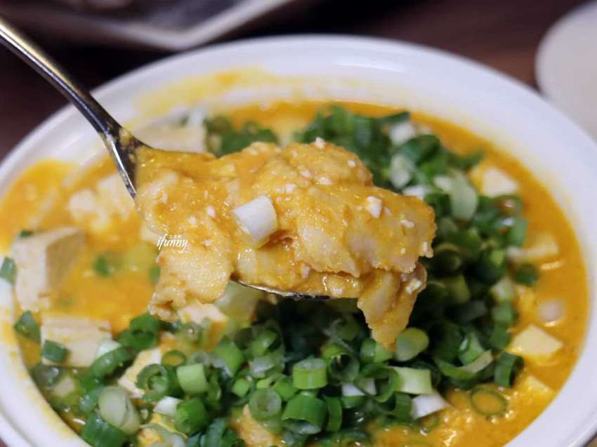 這一入口就是鹹蛋黃的鹹香滋味,醬汁完全裹附在魚片之上,魚片及豆腐都是嫩鮮滑口,也是很適合老人家或小孩的料理喔!
