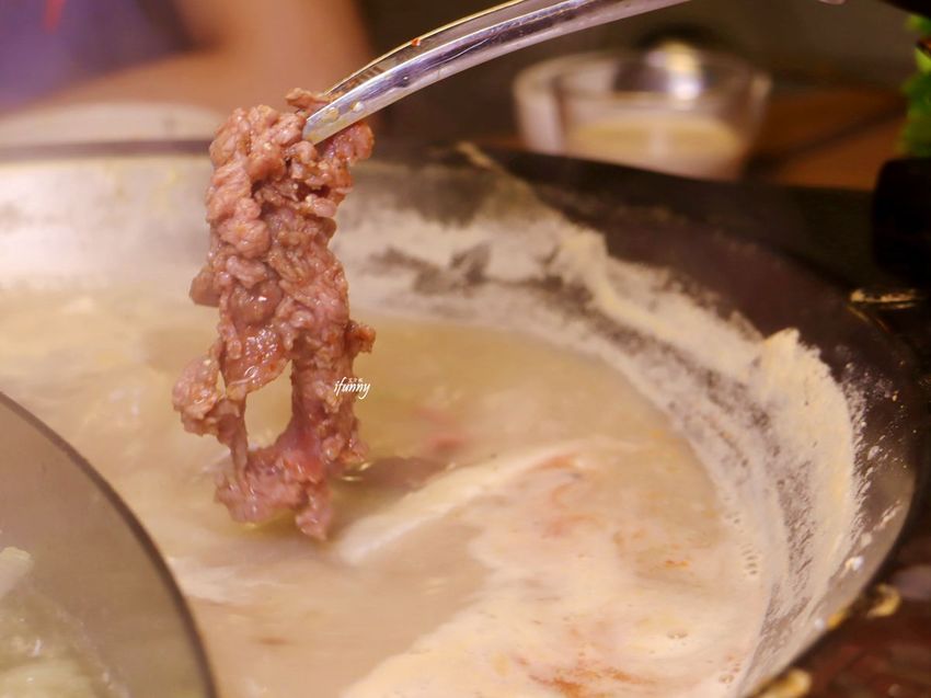 溫體牛的口感就是不一樣啊!稍微輕涮過,就能保有粉嫩不已的模樣,入口的軟嫩再加上微麻辣的滋味,令人一吃欲罷不能啊!