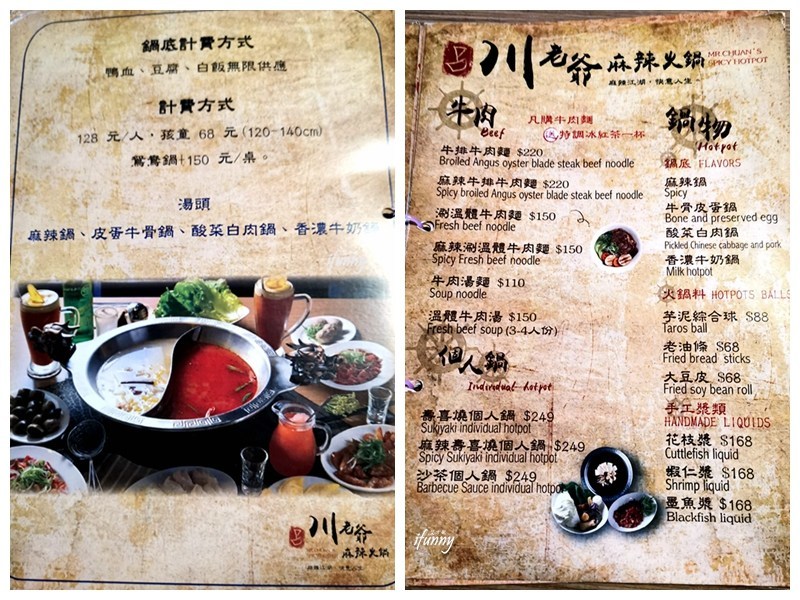 川老爺麻辣鍋的收費方式是$128/人,$68/兒童,若升級鴛鴦鍋是+$150/桌。