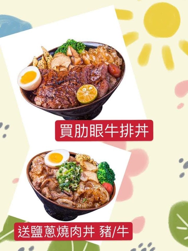 點『肋眼牛排丼』送『鹽蔥燒肉丼 豬/牛』乙份 👉<每日限量100份>