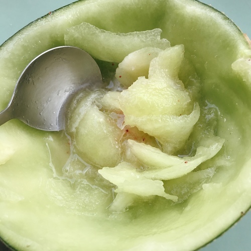 *🔸半顆哈密瓜要用鐵湯匙奮力挖!很多新鮮果肉可以吃~ ⠀⠀⠀⠀⠀⠀⠀⠀