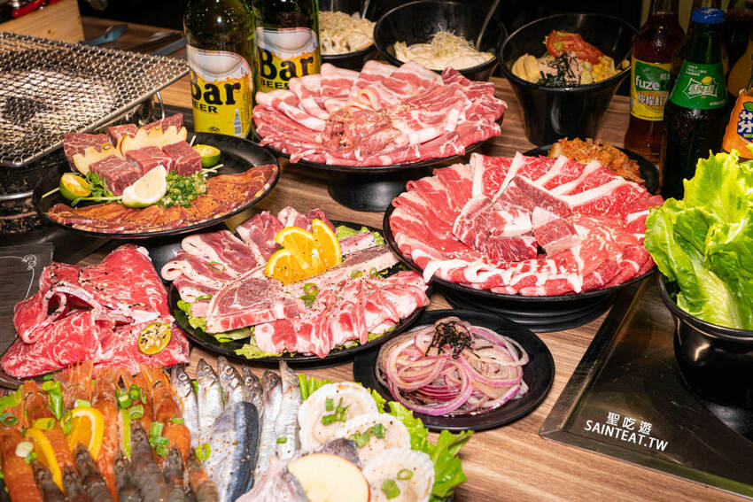 在基隆吃燒烤吃到飽我是真的覺得比台北划算很多。價格大約只有台北的六到七成,但整體的肉品品質卻比台北吃到飽店還要高幾個檔次。