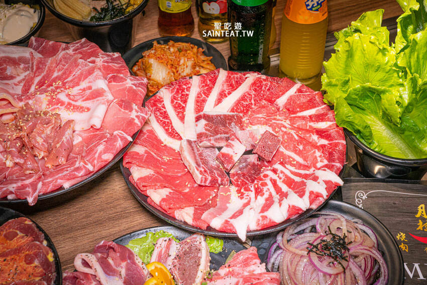 - 肥肥牛五花、安格斯嫩肩、嚴選霜降牛、苗條沙朗牛、澳洲牛肋排、帶骨牛小排、十八骰子牛、親親牛舌。