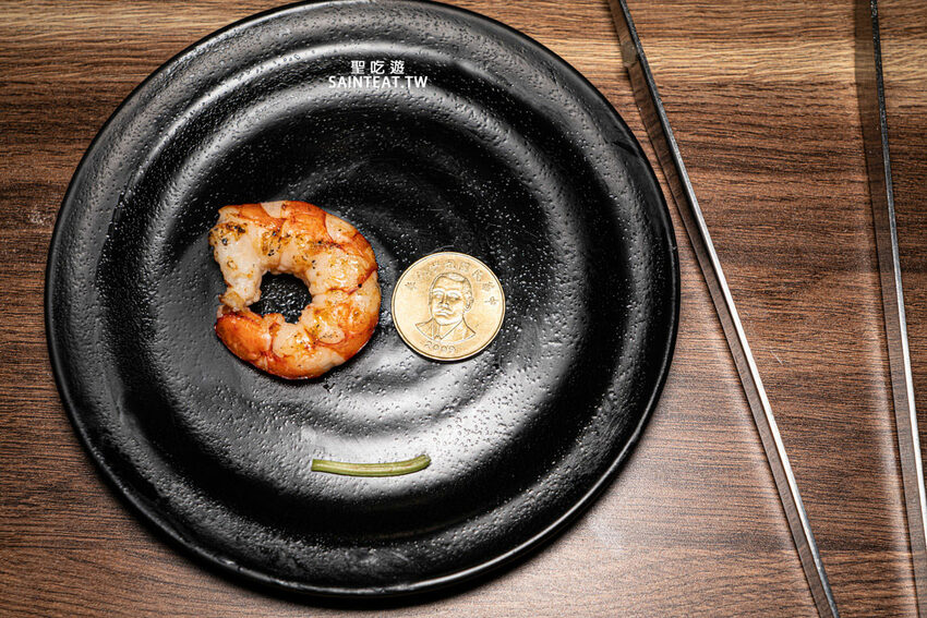 烤熟之後的天使紅蝦蝦肉比一個五十元硬幣還要大上兩三圈,吃起來很滿足!