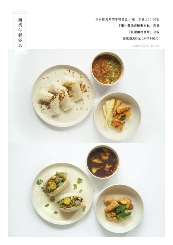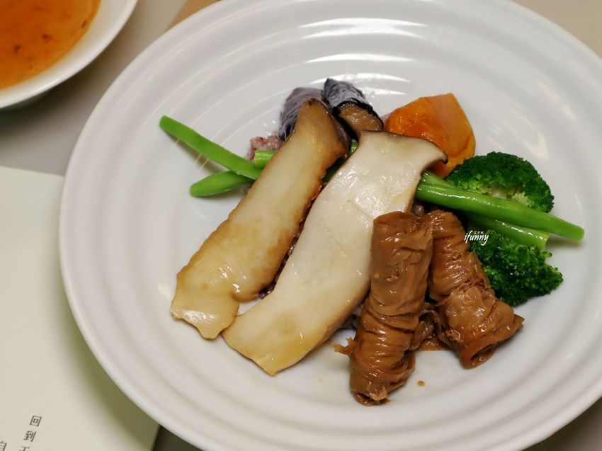 其中主廚特別推薦的有以下三項,我們等會就來試試看。蜜汁醬燒杏鮑菇 刈包、椒鹽蘆筍堅果 潤餅及三杯香菇豆腐 飯糰。