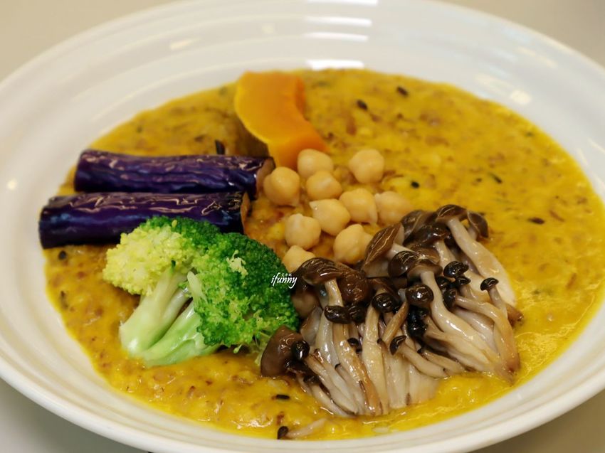 利用鮮脆杏鮑菇頭,與香茅一同爆香後,加入咖哩及泰國香純椰奶、純天然鮮奶拌勻,再以新鮮檸檬葉提香,整個咖哩略帶辣度,但滋味醇厚香濃,相當引人入勝,是一喝就無法停下的美味。