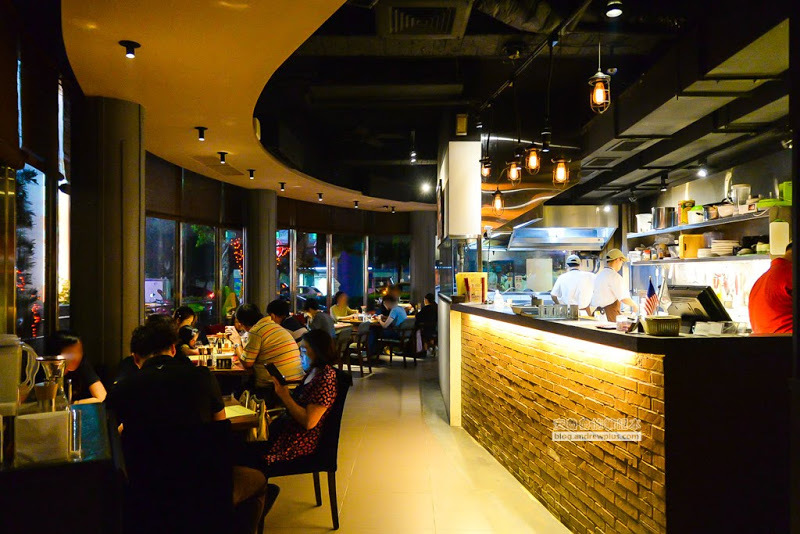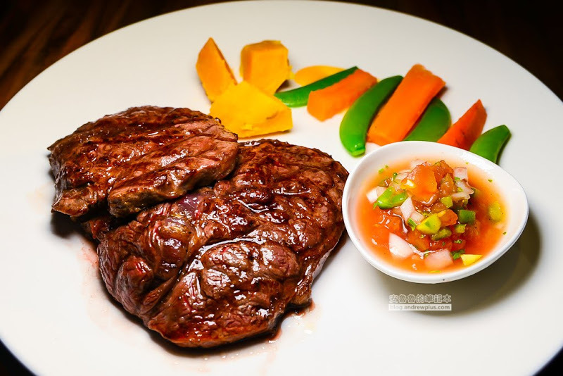 走進店裡,左手邊的紅色牆上寫著「來自美洲炭烤達人」;我們比較常吃的牛排不是用鍋子煎、烤箱烤,要不就是用瓦斯火烹調,所以看到炭烤兩個字,腦子裡馬上聯想到炭火香