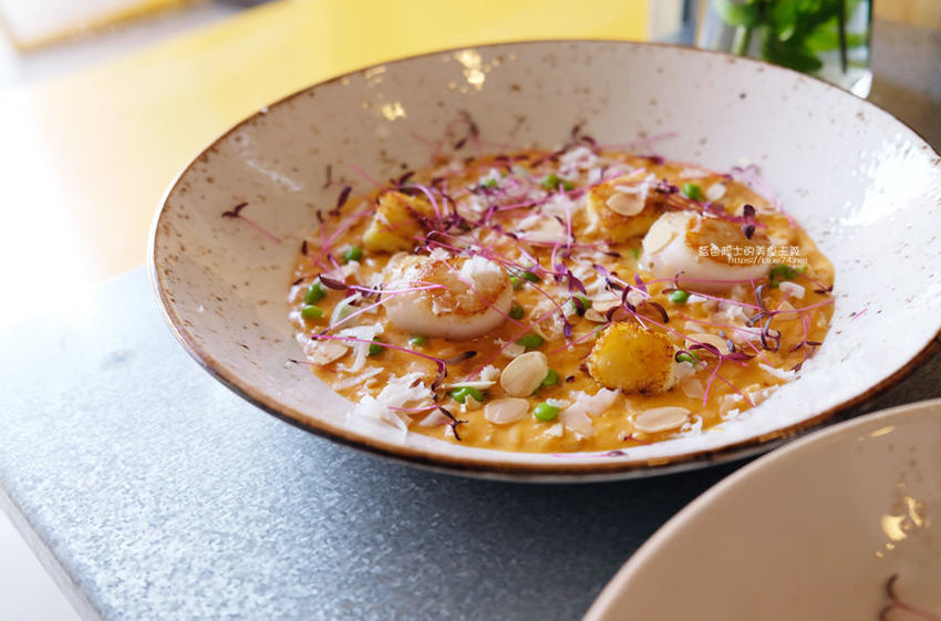 單邊微煎的生食級干貝鮮甜,真是餐盤上的美味…