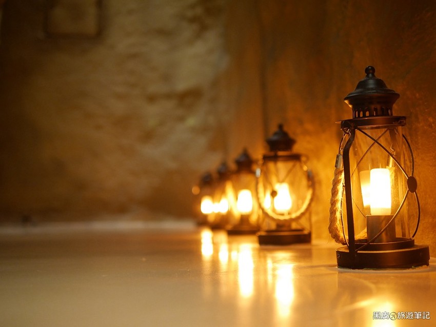 一進門,一整排的造型燈在地上閃爍著
