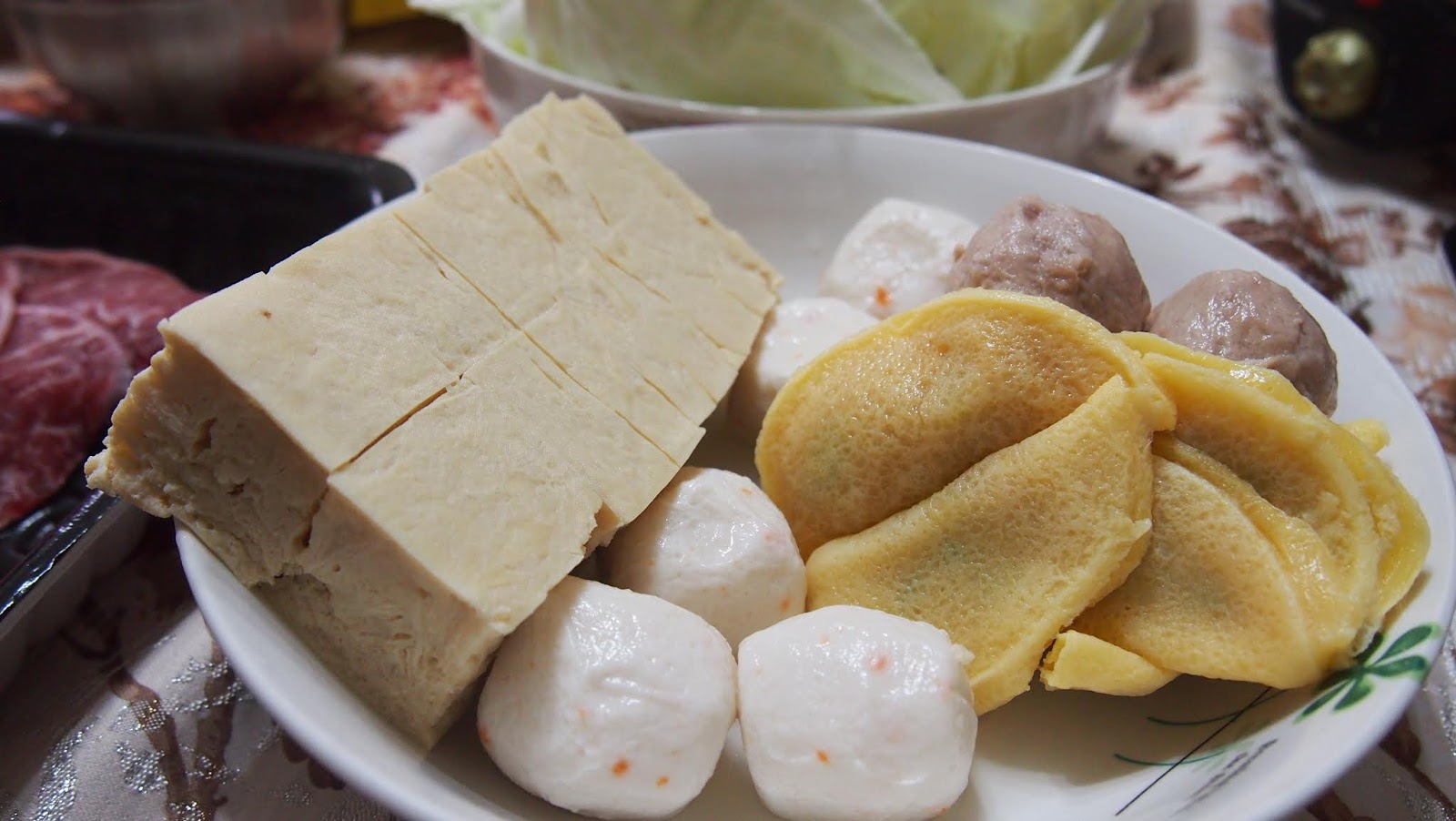 火鍋配料有凍豆腐、蛋餃、起士球,貢丸,都是我愛的火鍋料,我家奶奶很愛起士球,值得一提的是,貢丸很OK,居然獲得一家人的認同,我平常對貢丸的要求就是不要爛爛的沒口感,雅香附的貢丸很Q彈,感覺是做貢丸的人摃很久那樣。