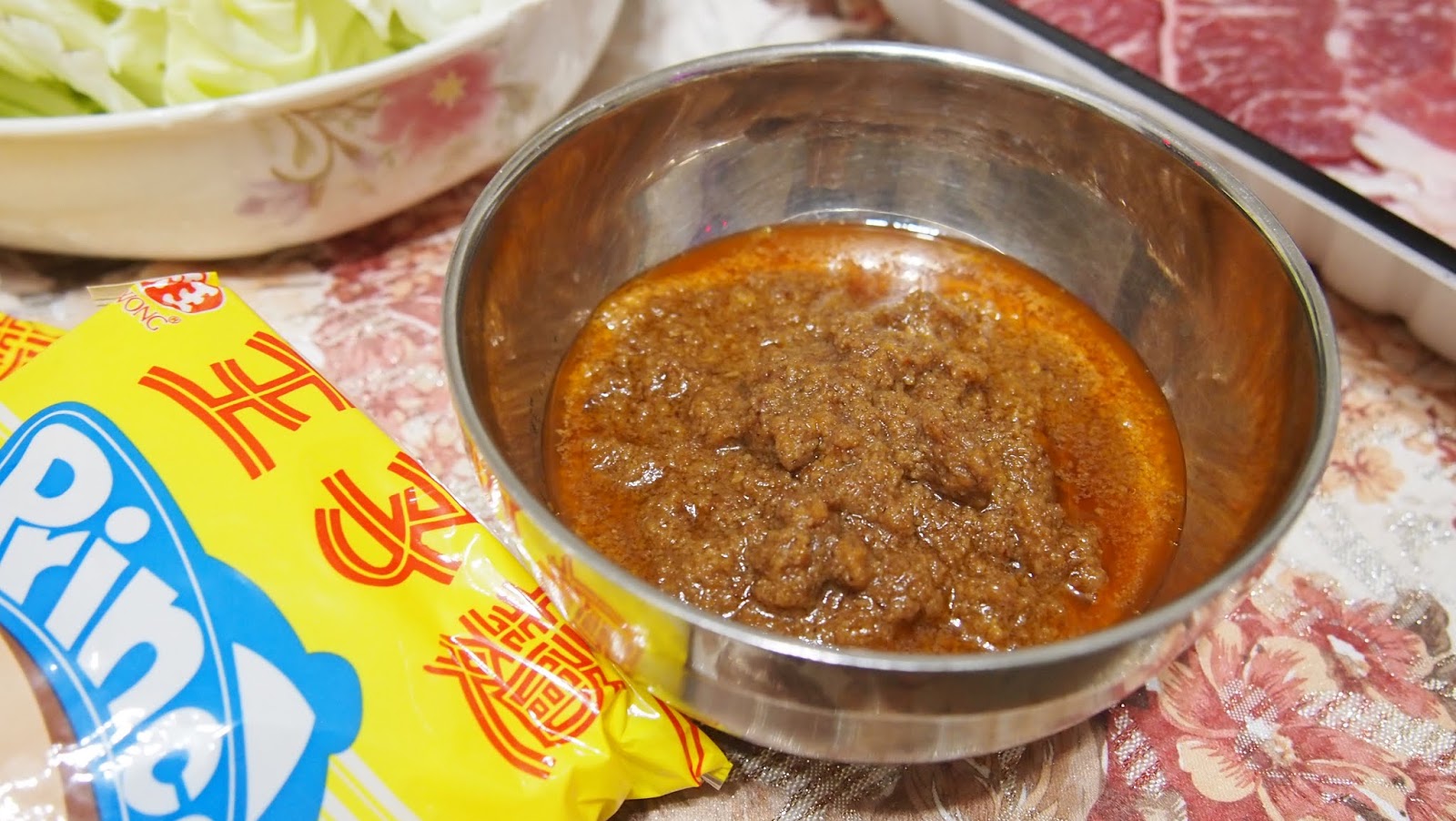 鍋底為濃縮的石頭鍋底,裡面還能看到燉煮的蔬菜(白菜、洋蔥...),真材實料燉出來的湯就是比較清爽甘甜,因為考慮到外加的蔬菜也會出水,所以參考說明書上說的另加1000cc的水有再減少約200cc,想說如果鹹度高再加水,這樣才不會一次稀釋太過而變得無味。