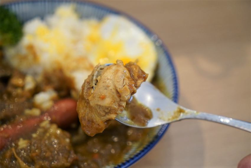 雞肉部分也是給的蠻多的,肉質也挺鮮嫩的,整體味道跟牛肉是一樣的,只差在主食部分,整體用餐下來覺得還不錯,價格屬於中上價位,希望在主食方面上可以有更多的選擇,苗栗咖哩飯專賣店比較少見的大概就是乾咖哩,有機會再訪的話再來試試豚肉咖哩。