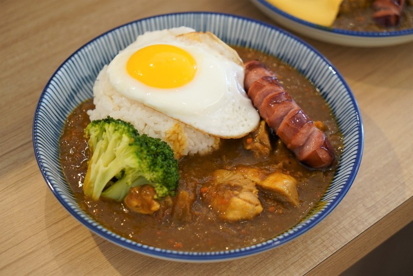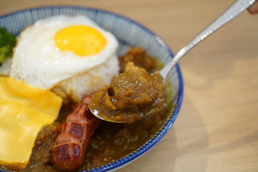 咖哩醬充滿著蔬果香氣,咖哩醬本身是微微微辣的程度,如果你想調整辣度是可以調整的,加入半熟蛋口感更棒,主食牛肉給的不算少,牛肉軟嫩好吃,應該是以燉牛腩的方式烹調,整體風味屬於比較重口味,不過選了小辣覺得辣度還不明顯,下回可能要試試中辣。另外還加價加點了起司跟德國香腸,起司多了香濃的滑順口感,德國香腸煎得外脆內軟,與咖哩飯搭配實在美味🤤 ⚠️另外可以免費加飯、續醬。