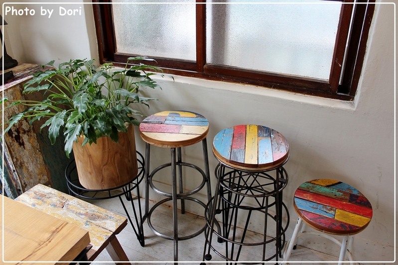 最讓我喜歡的木頭小圓凳,店家為圓凳添上色彩,看起來多了些活潑俏皮意味