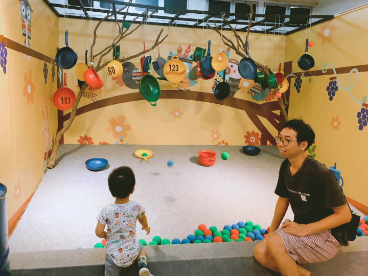 一樓的活動區域,除了火車、小蘑菇的家跟樹洞,旁邊還有一小區的球池歐。