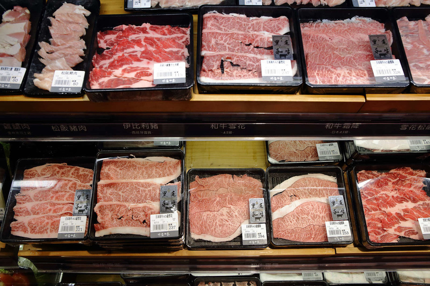 肉品區,除了海鮮,還有超多肉品可以選擇,高檔牛肉、豬肉、羊肉、鴨肉,當然不能錯過日本A5級和牛囉
